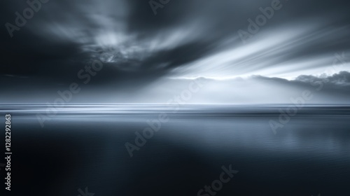 © Feri, Obraz premium Dramatic Monochrome Beach Landscape With Radiating Light From Cloudy Sky
