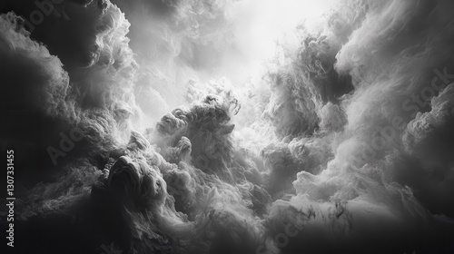 © sarayut, Obraz premium Dramatic Monochrome Cloudscape Intense Light and Dark Grey Cloud Formations