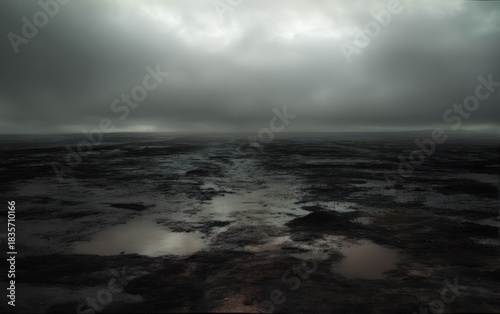 Fototapeta premium Dramatic moody landscape with dark cloudy sky over water surface