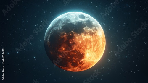 Obraz premium Dramatic Moon with Contrasting Warm and Cool Tones Against Stars - Made with...