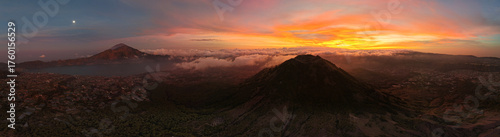 Fototapeta premium dramatic morning scene above erupting volcano with colorful clouds and awakening wilderness Kintamani Batur Abang Angung Bali