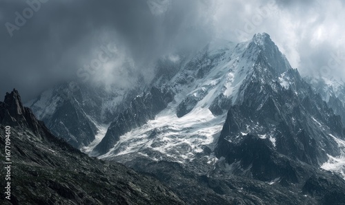 Obraz premium Dramatic mountain peak under stormy clouds
