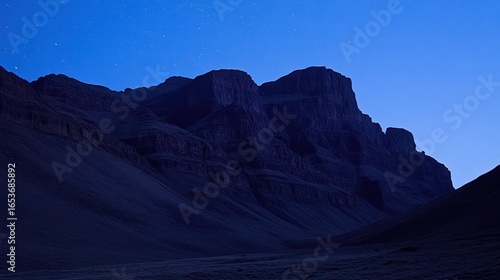 © mafatih, Fototapeta premium Dramatic mountain range silhouette against twilight sky with visible stars provides a sense of awe