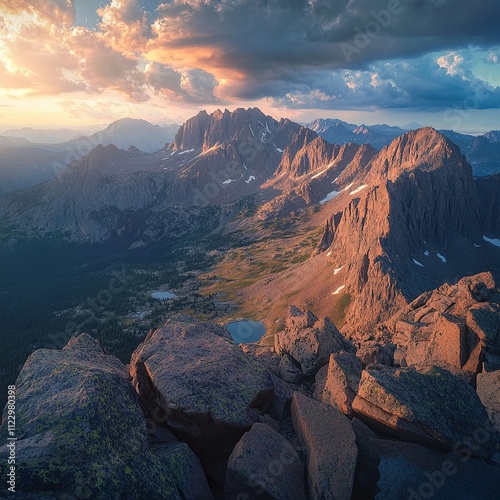 © karnsiree, Obraz premium dramatic mountain scene at dusk