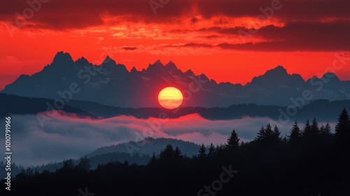 © Sandu, Obraz premium Dramatic Mountain Sunset Landscape