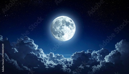 © Sabar, Fototapeta premium Dramatic Night Sky Scene with a Full Moon and Clouds