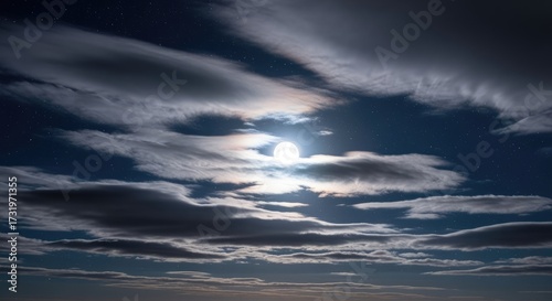 © Nazriel, Obraz premium Dramatic night sky with full moon and clouds
