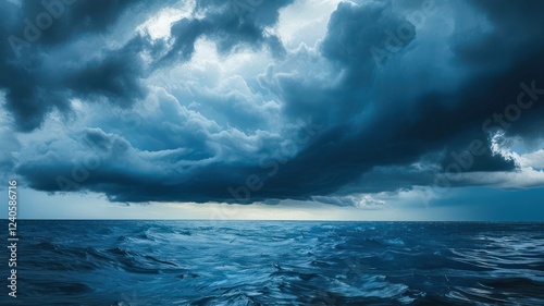 Obraz premium Dramatic ocean scene with dark, swirling clouds overhead