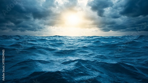 © ngamaz, Obraz premium Dramatic ocean scene with waves and a cloudy sky at sunset.