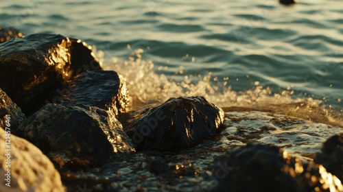 Fototapeta premium Dramatic Ocean Waves and Rocks with Harsh Sunlight