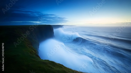 Obraz premium Dramatic Ocean Waves Crashing Against Coastal Cliffs