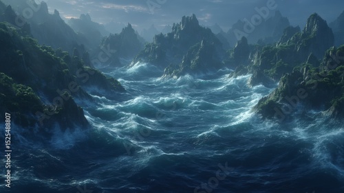 © Narongsag, Fototapeta premium Dramatic Ocean Waves Crashing Against Rocky Coastline