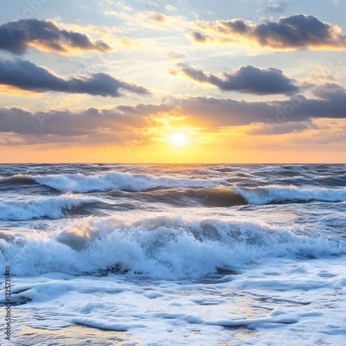 © MD, Obraz premium Dramatic Ocean Waves Sunset Seascape