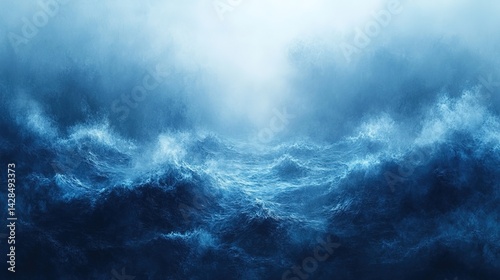 Fototapeta premium Dramatic ocean waves under a misty sky, deep blue hues and turbu