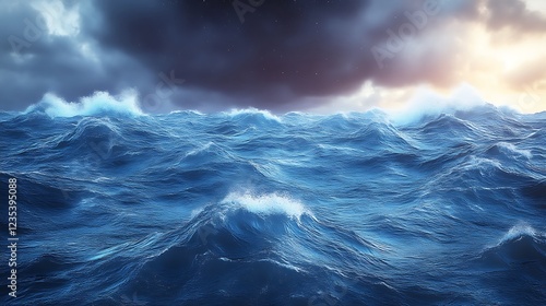 © Gayeng, Fototapeta premium Dramatic Ocean Waves Under a Stormy Sky