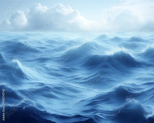© Aslob, Fototapeta premium Dramatic ocean waves under cloudy sky.