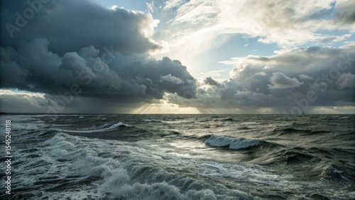 © IlluminateArts, Obraz premium Dramatic ocean waves under moody clouds at sunset