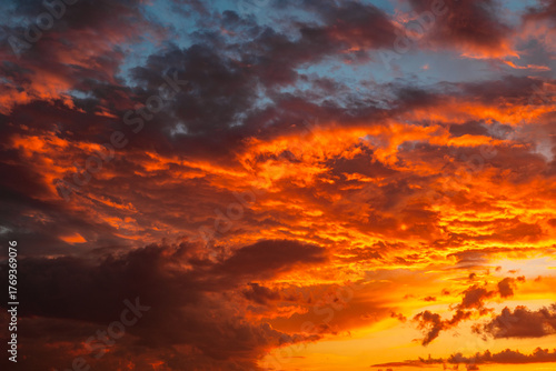 © senerdagasan, Fototapeta premium Dramatic orange clouds. Cloudscape background photo