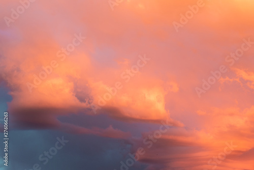 Fototapeta premium Dramatic orange sky with clouds at sunset. It can be used as a background