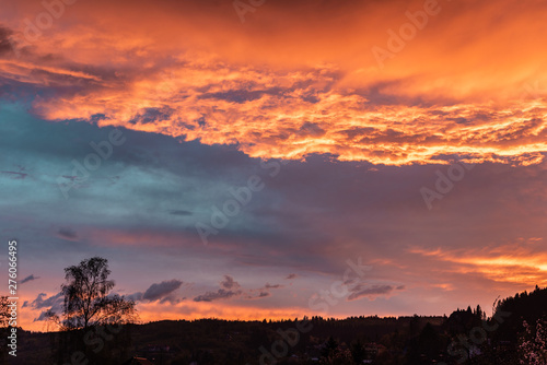 © chernikovatv, Fototapeta premium Dramatic orange sky with clouds at sunset. It can be used as a background