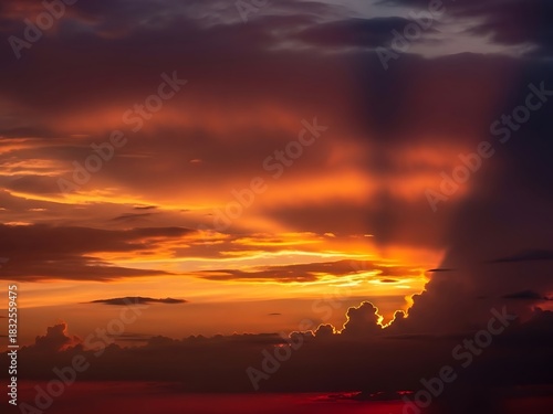 Obraz premium Dramatic Orange Sunset with Dark Clouds