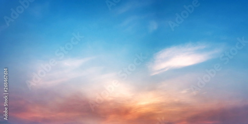 Fototapeta premium Dramatic panorama sky with cloud on sunrise and sunset time.