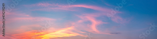 © tanarch, Obraz premium Dramatic panorama sky with cloud on sunrise and sunset time. Panoramic image.