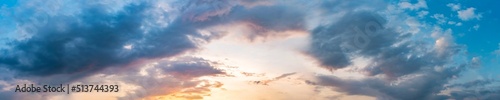 © tanarch, Obraz premium Dramatic panorama sky with cloud on sunrise and sunset time. Panoramic image.