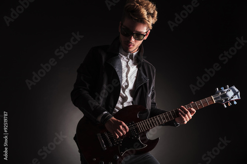 Obraz premium dramatic picture of a young rock and roll guitarist