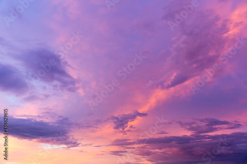 Naklejka premium Dramatic pink and purple clouds during a summer sunset, Montreal, Quebec, Canada