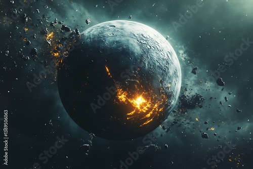 Obraz premium Dramatic Planet Destroyed in Space Debris with Fiery Explosion Effect
