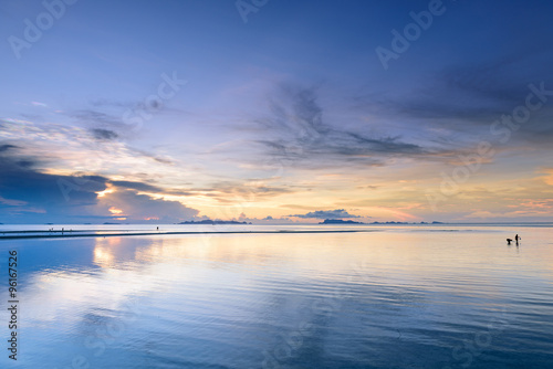 Naklejka premium Dramatic ponoramic tropical beach sky sunset background