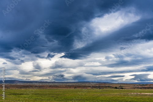 Obraz premium Dramatic rain clouds over pasture land in Patagonia