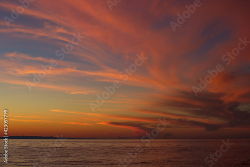Fototapeta premium Dramatic red clouds after sunset in dusk on Lake Baikal, beautiful scenic...