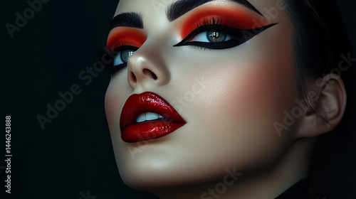 Naklejka premium Dramatic Red Eye Makeup Look for Fashion Beauty Editorial