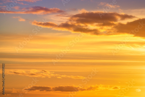 Obraz premium Dramatic red, orange, and yellow real fiery sky at sunset. Suitable for sky...