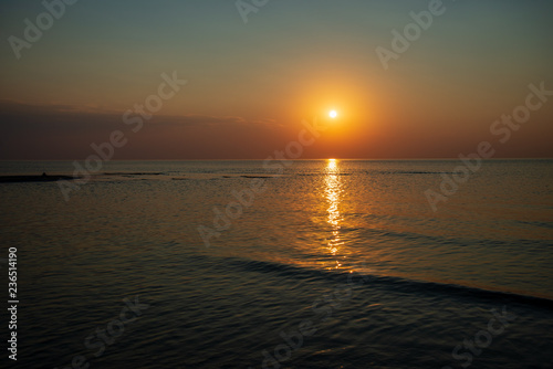 © Martins Vanags, Naklejka premium dramatic red orange colored sunset over the calm sea at summer