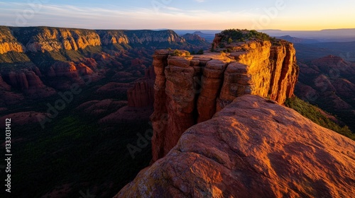 © Ashalina, Fototapeta premium Dramatic red rock pinnacle at sunrise