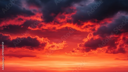 Fototapeta premium Dramatic red sky sunset natural landscape abstract cloud formation intense...