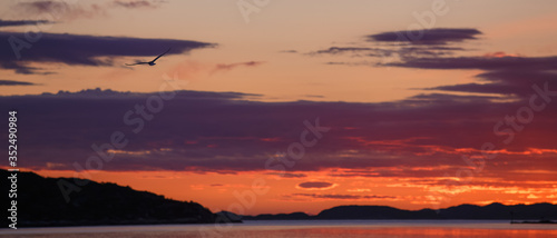 © Sergey Bogomyako, Obraz premium Dramatic red sunset sky in the sea