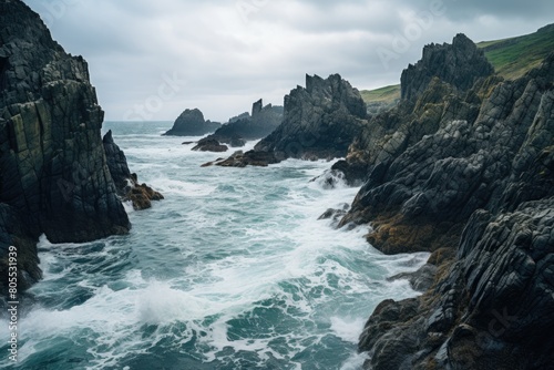 Obraz premium Dramatic rocky coastline with crashing waves