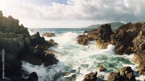 Obraz premium Dramatic rocky coastline with crashing waves