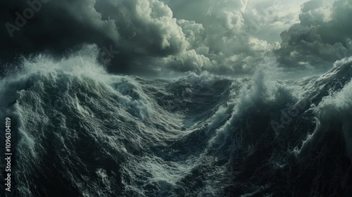 Fototapeta premium Dramatic sea with stormy waves and dark clouds, creating an intense and moody...