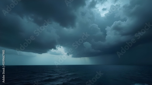 Fototapeta premium Dramatic seascape with stormy clouds over dark ocean surface creating a moody...