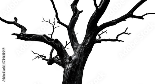 Obraz premium Dramatic silhouette of a bare tree stark black and white contrast isolated on white background