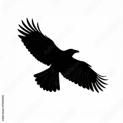 © Pure Imagination, Fototapeta premium Dramatic Silhouette of a Black Bird Flying in the Sky with Wings Spread on White Background