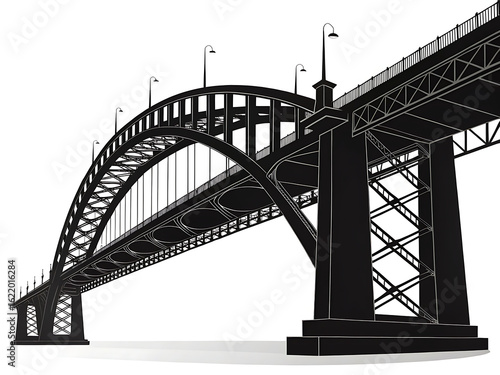 © MdNajmul, Obraz premium Dramatic silhouette of a large steel arch bridge against a white background