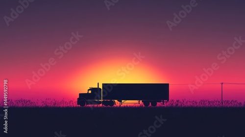 © Barokahe, Obraz premium Dramatic silhouette of a semi-truck at sunset creating a minimalist composition