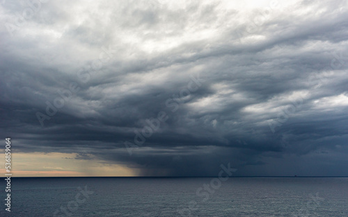 Obraz premium Dramatic sky and clouds during a storm over Mediterranean Sea, Valencia, Spain, Europe