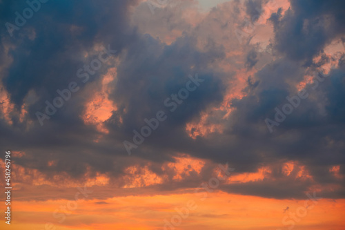 Fototapeta premium Dramatic sky at sunset with red, yellow and orange colors.